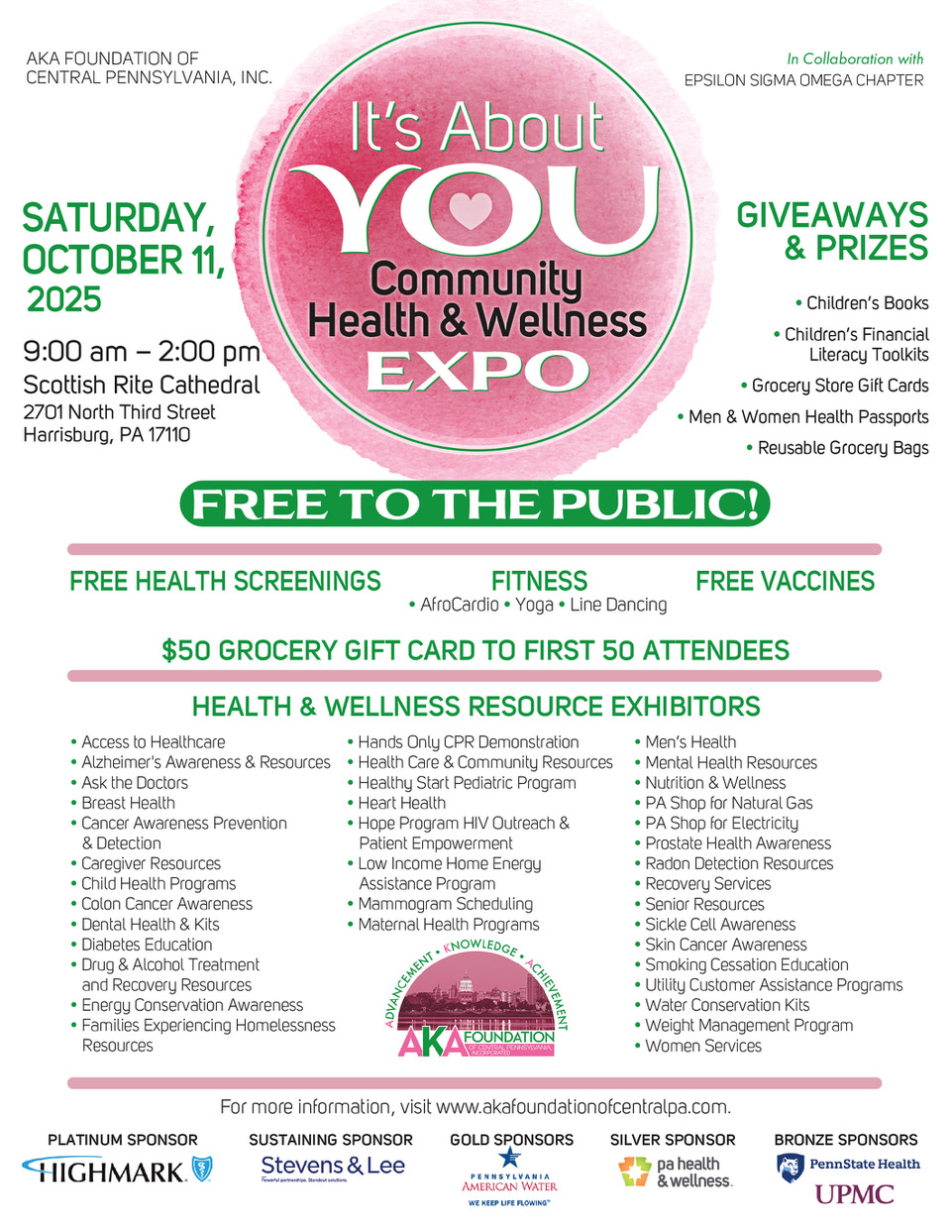 These events help to support the Foundation’s mission of providing support and programs that advance and promote healthy lifestyle, educational advancement, economic empowerment and environmental sustainability in the Greater Harrisburg community.